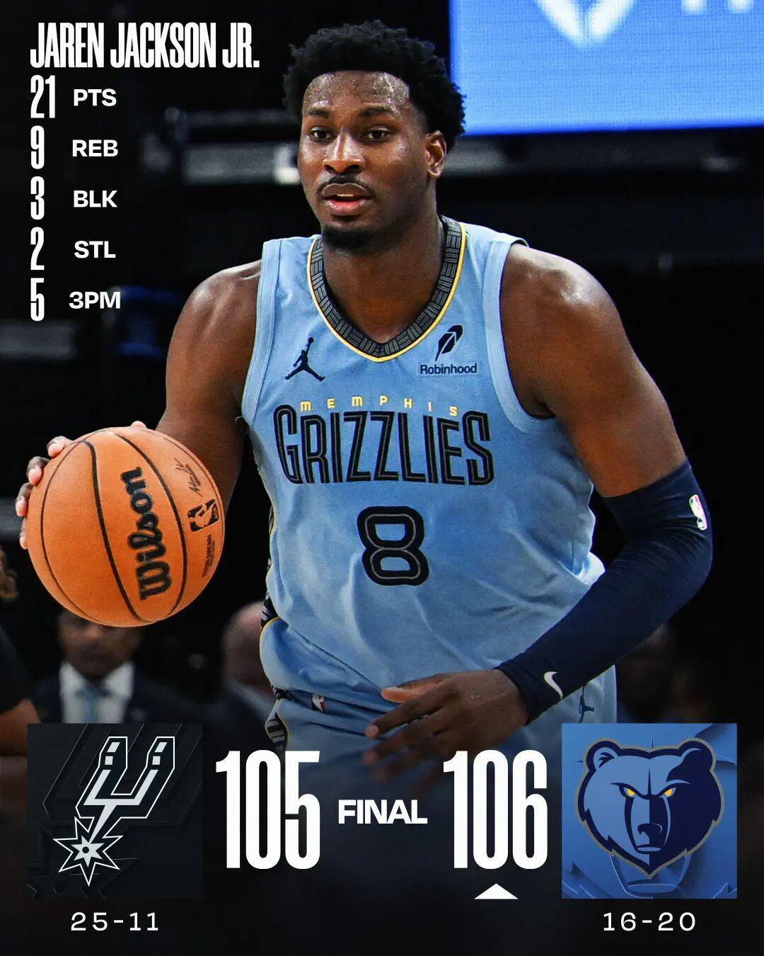文班复出30分 马刺负灰熊
